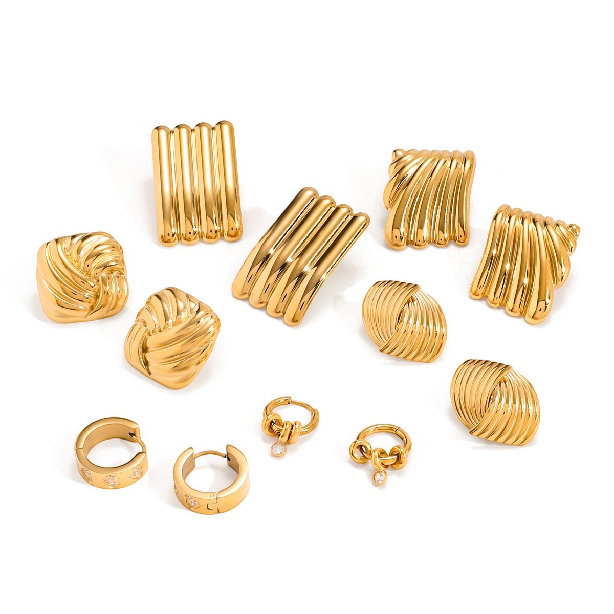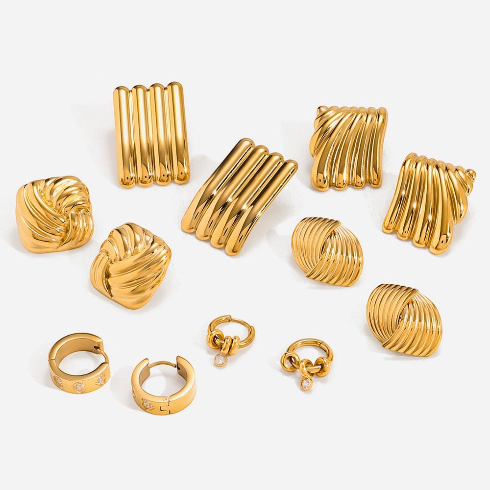 Jingqiao European and American stainless steel, gold stud earrings, light luxury, high-end zircon earrings, titanium steel earrings, cross-border 18K jewelry.