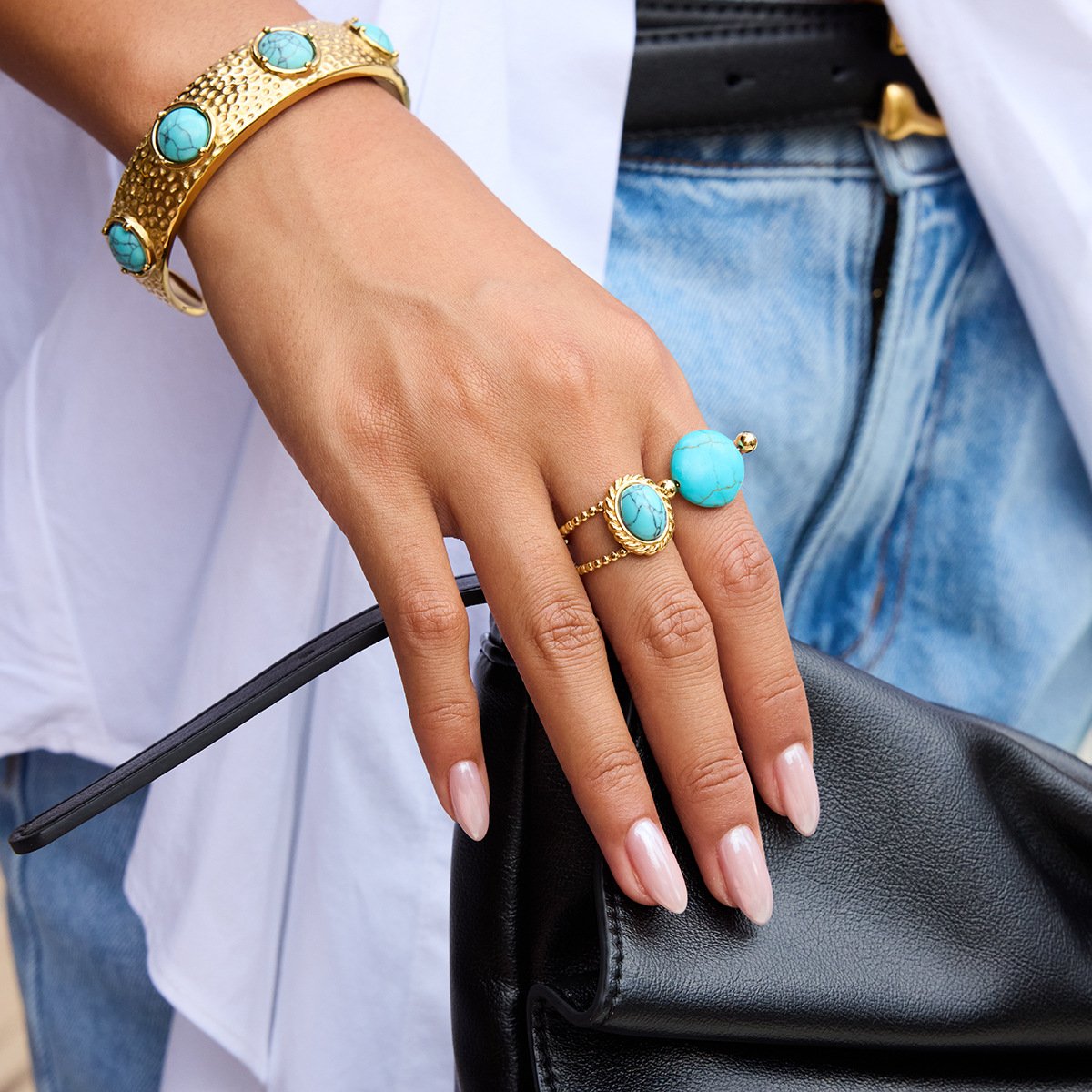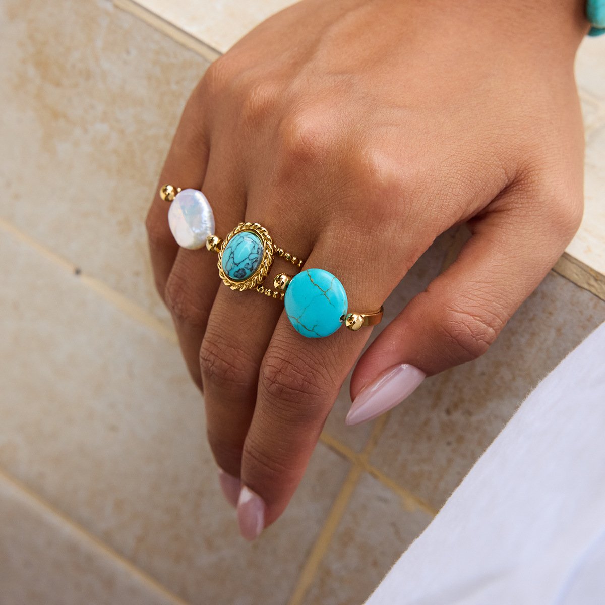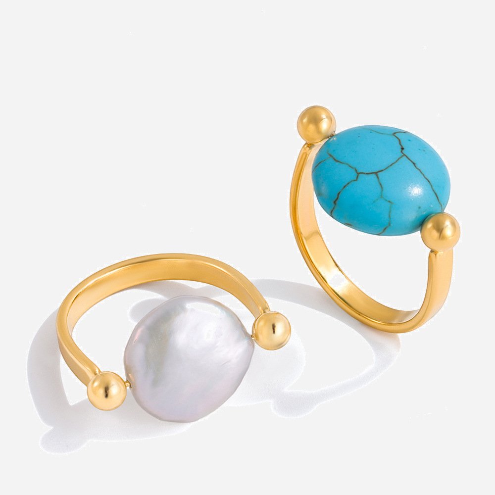 Jingqiao’s 18K gold-plated stainless steel pearl ring for a French retro and luxurious niche jewelry, cross-border jewelry