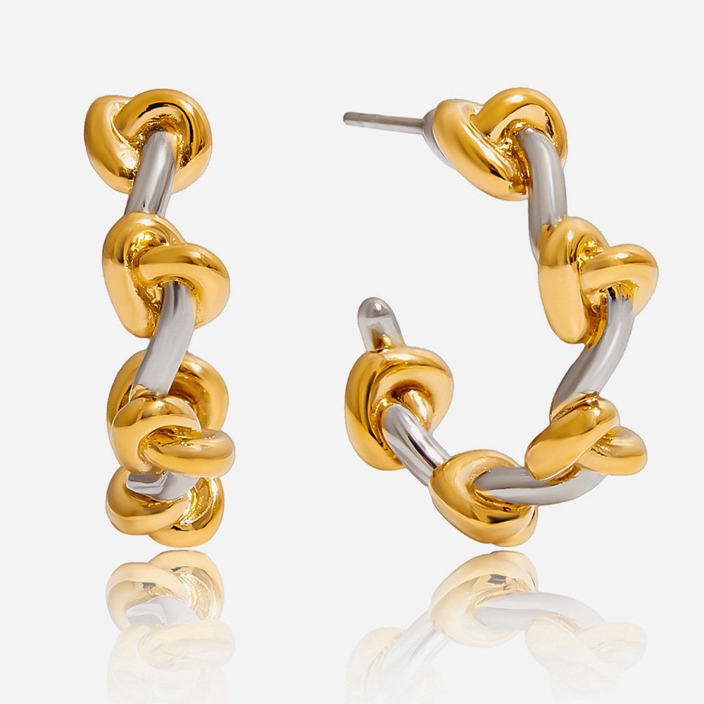 Jingqiao’s classic design, 18K gold stainless steel, gold and silver colorblock knotted design, C-hoop earrings, wholesale