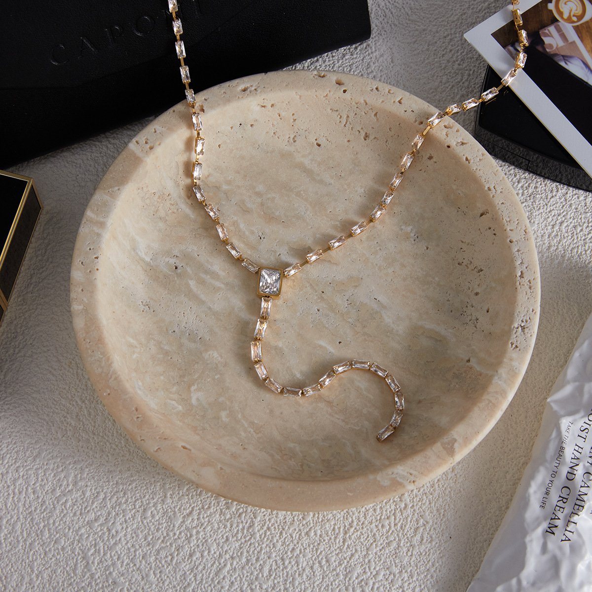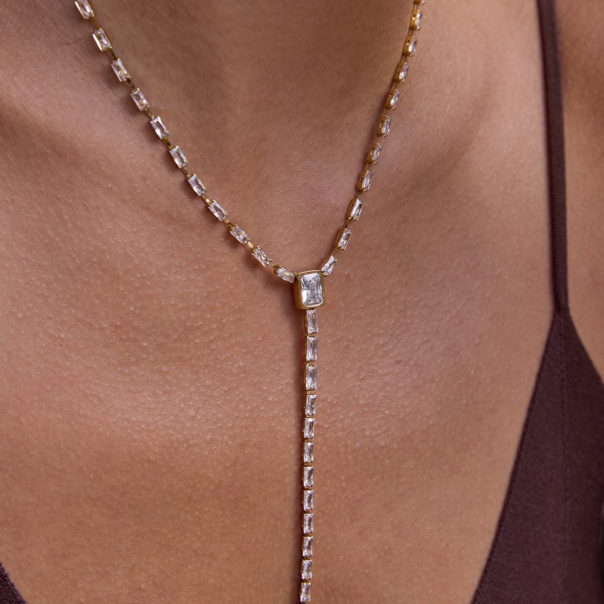 Jingqiao’s classic design, 18K gold stainless steel, white square zircon Y-shaped chain, stainless steel jewelry
