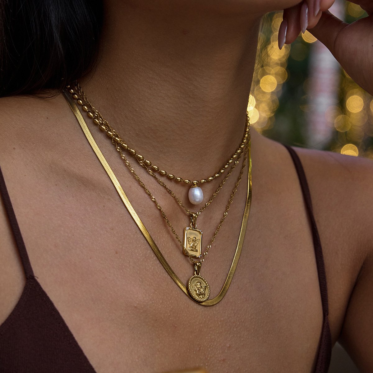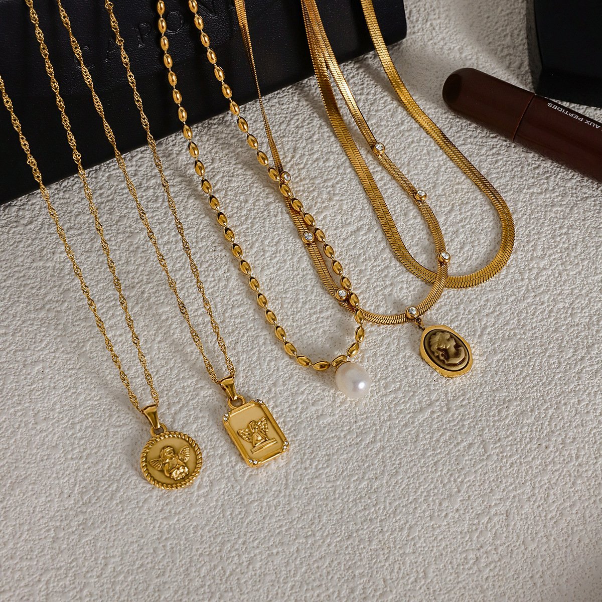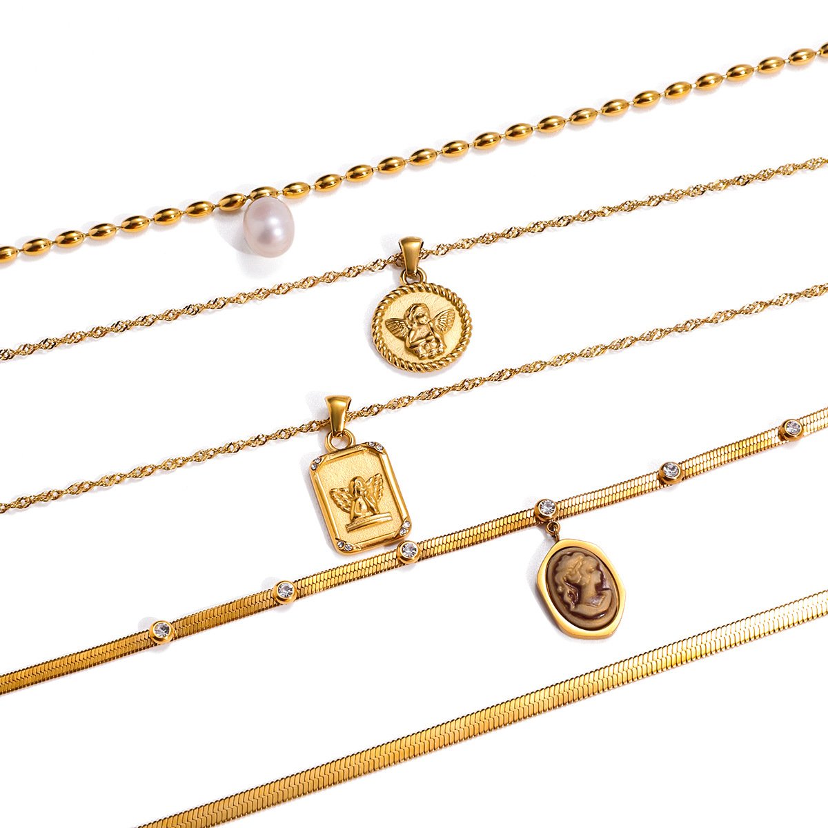 Jingqiao’s European and American angel titanium steel necklace, light luxury, high-end clavicle necklace, 18K gold Popular stainless steel jewelry across the globe.