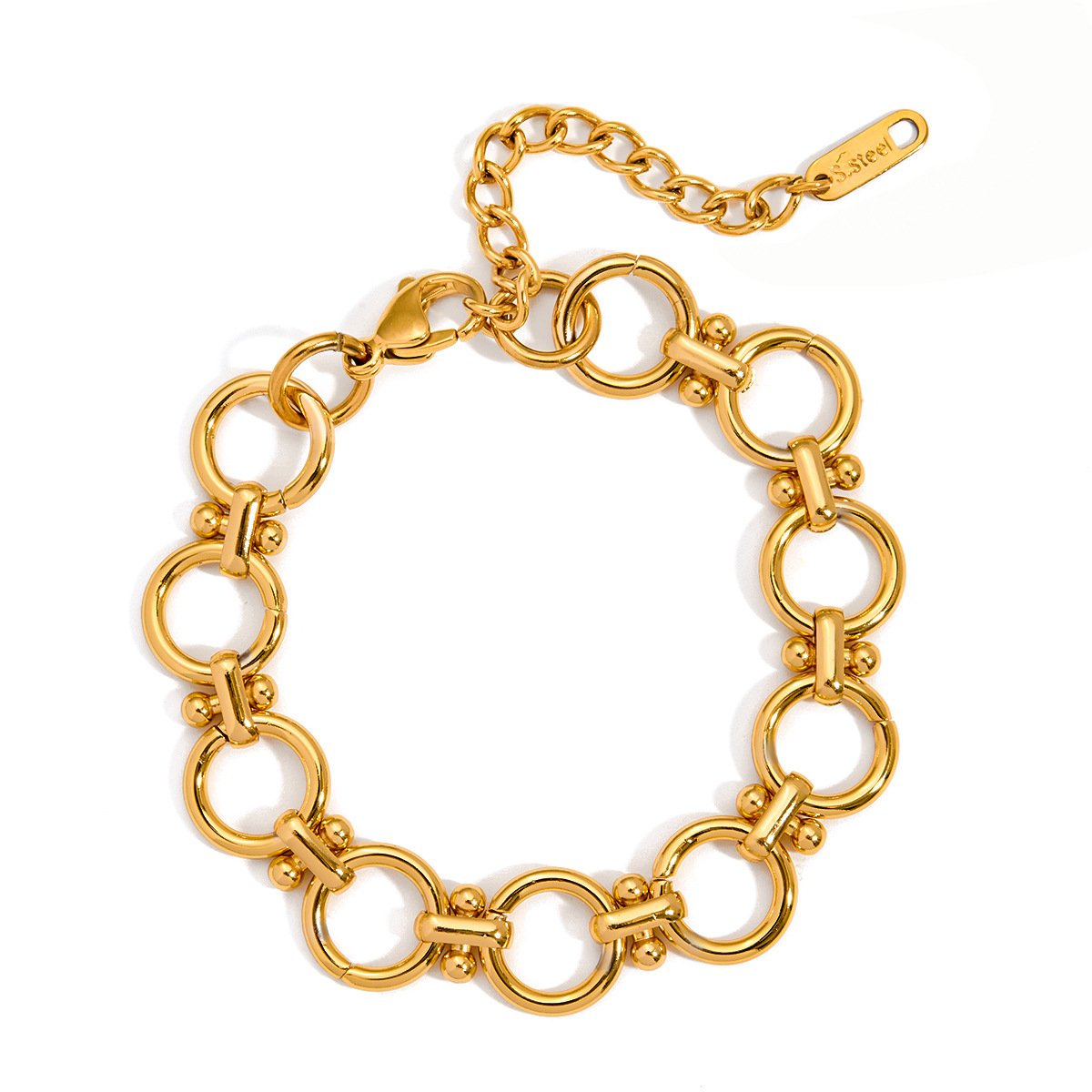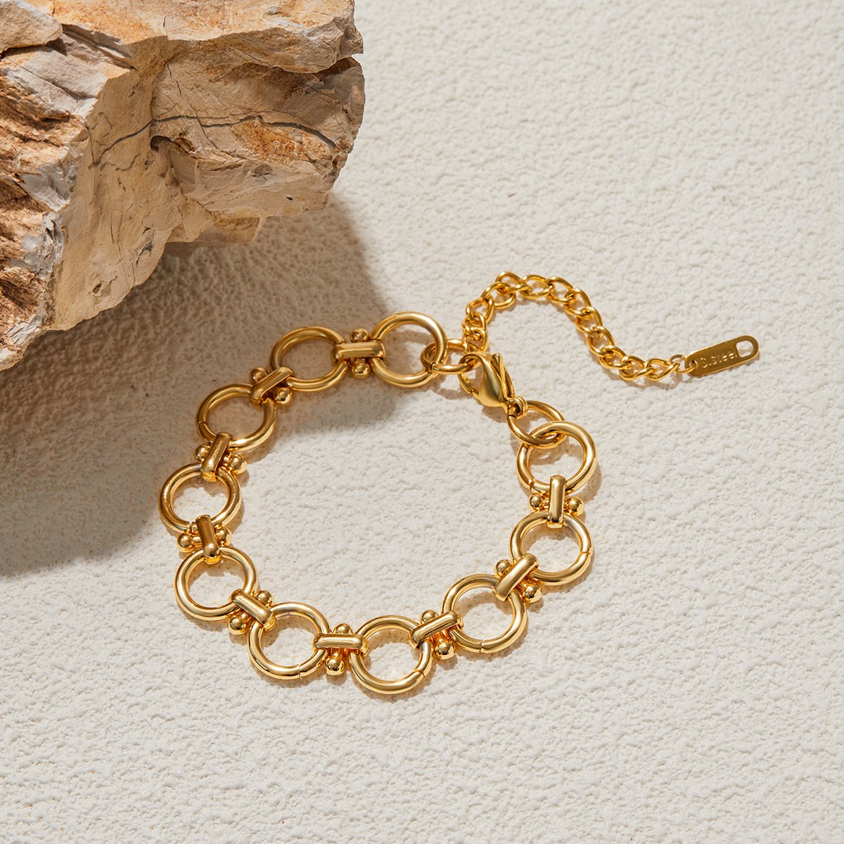 Jingqiao’s minimalist design, 18K gold stainless steel O-shaped hollow handmade chain, stainless steel bracelet, wholesale jewelry.