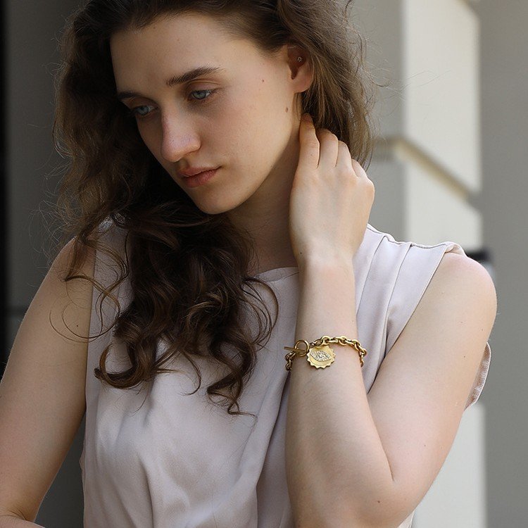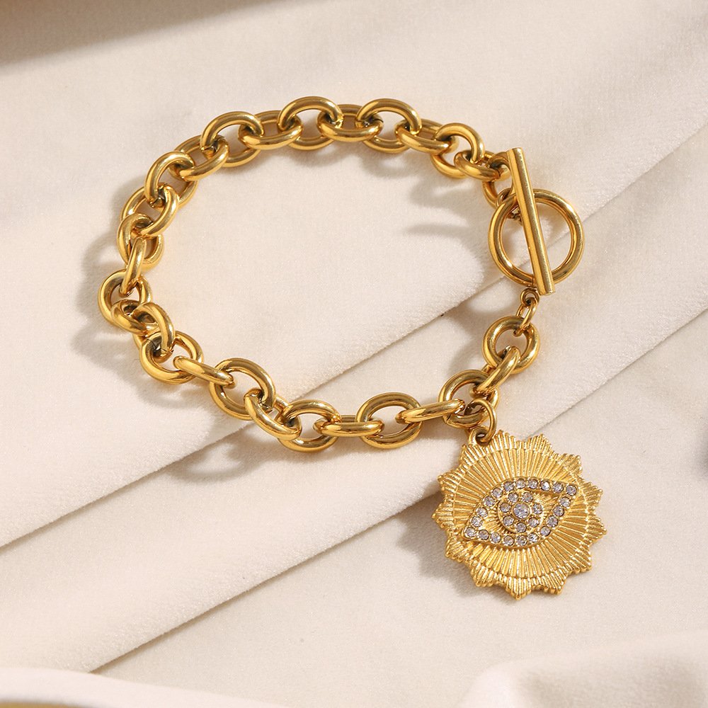 New European and American cross-border fashion and personalized jewelry: stainless steel 18K gold-plated large O-shaped eye pendant bracelet