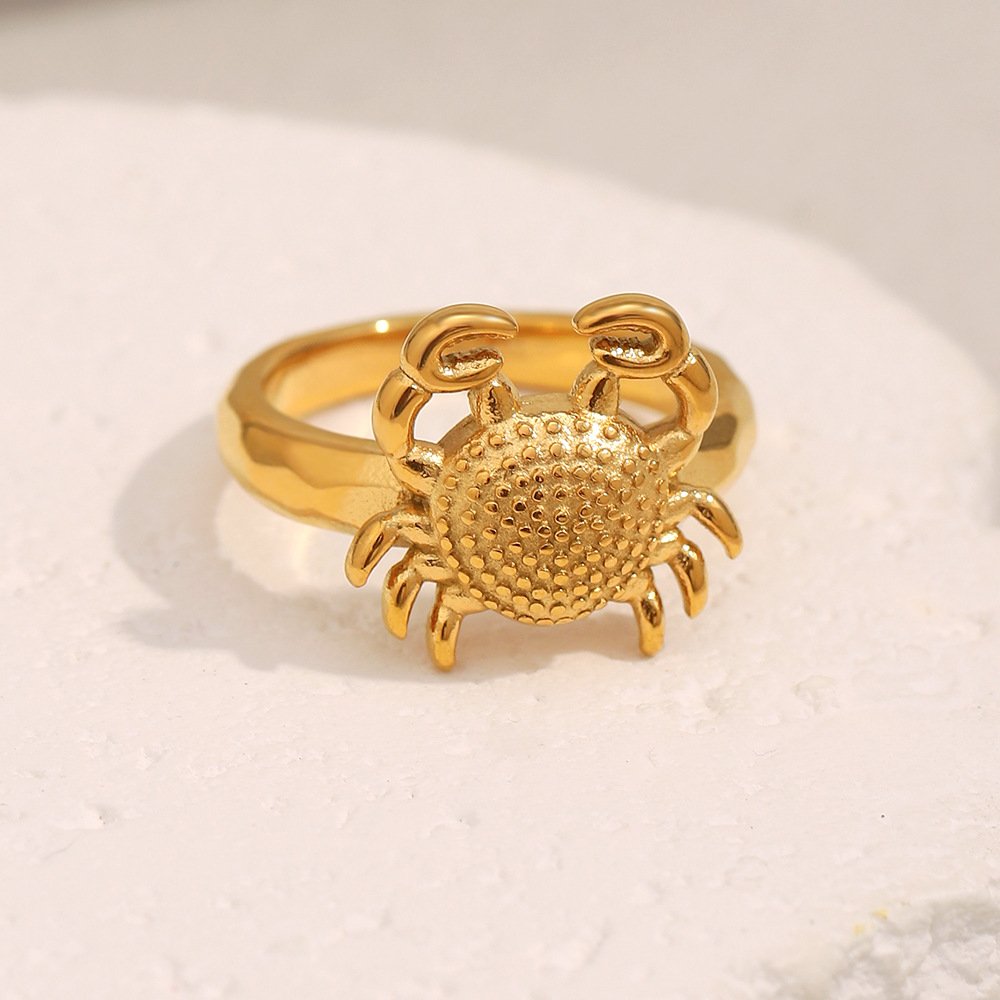 New European and American cross-border personalized fashion and exaggerated rings and bracelets, stainless steel 18K gold-plated crab rings.