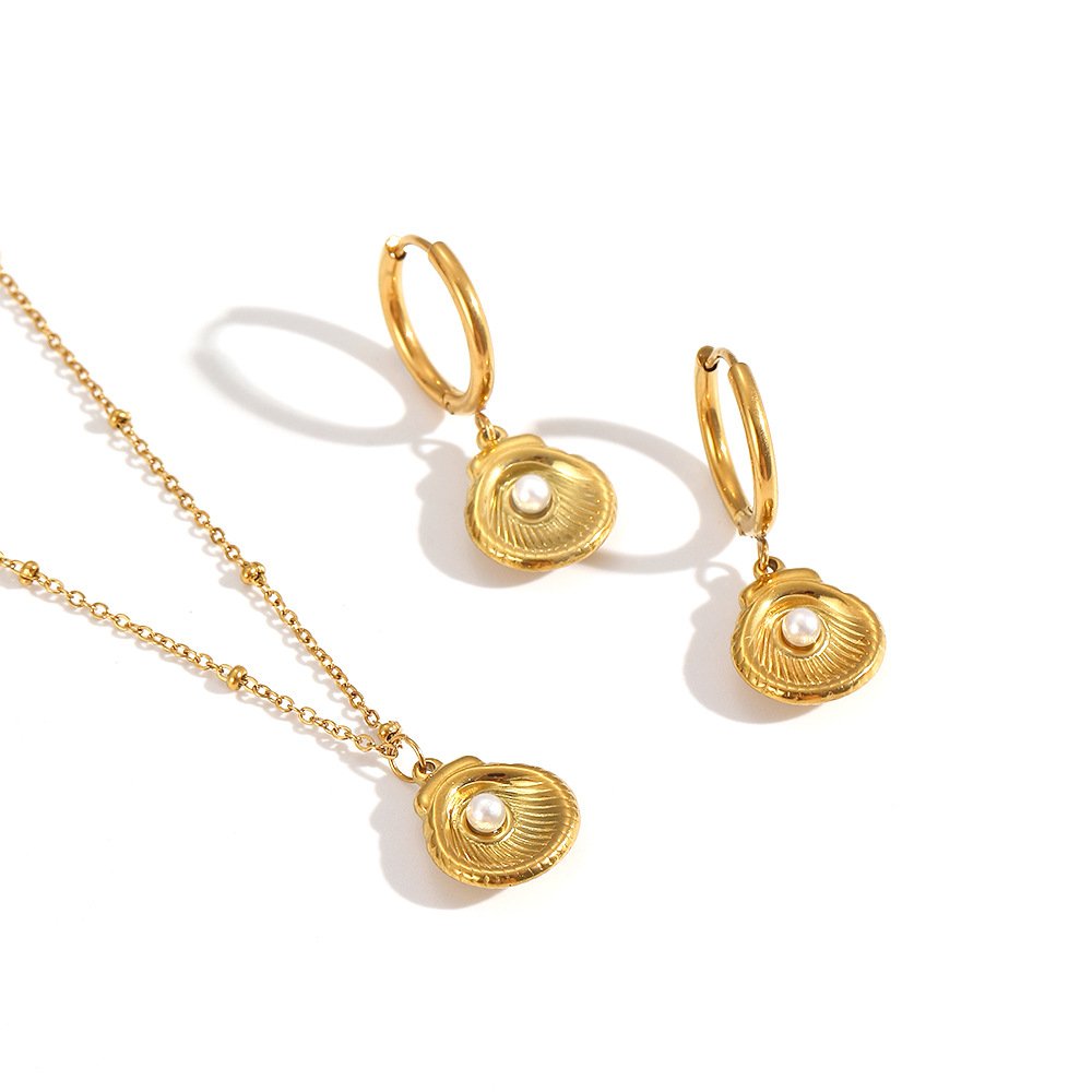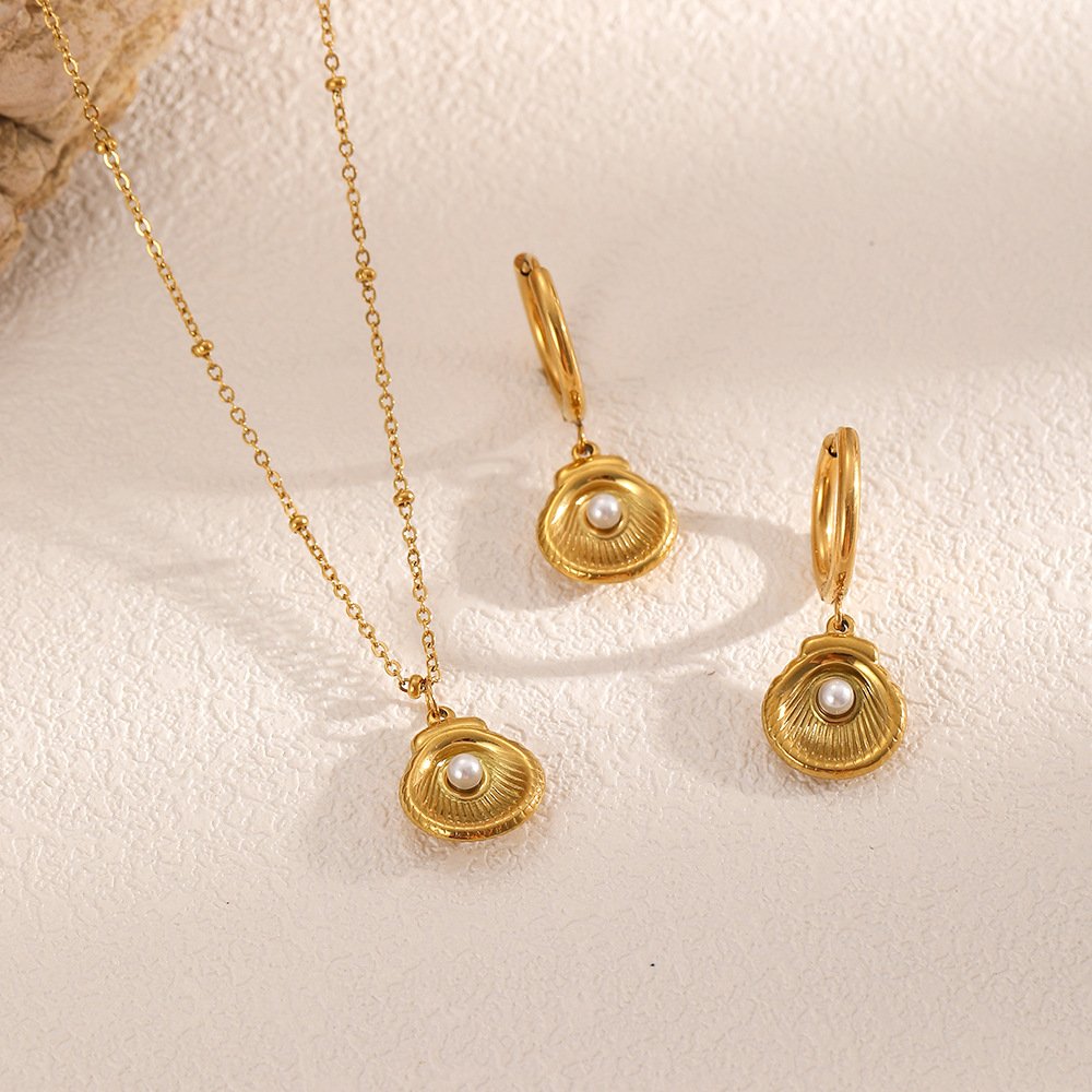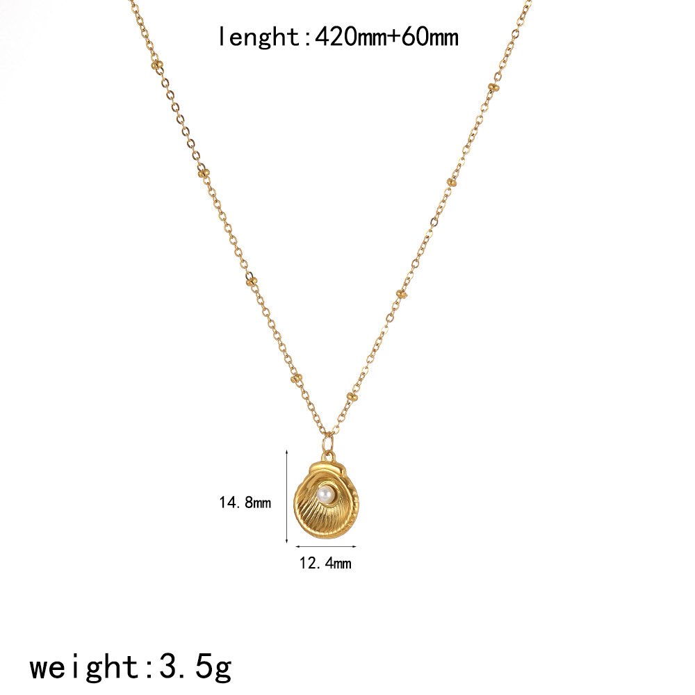 Personalized ins style pearl shell necklace female fashionable temperament high-end 18k gold-plated stainless steel long clavicle chain