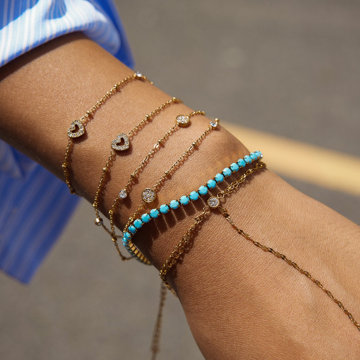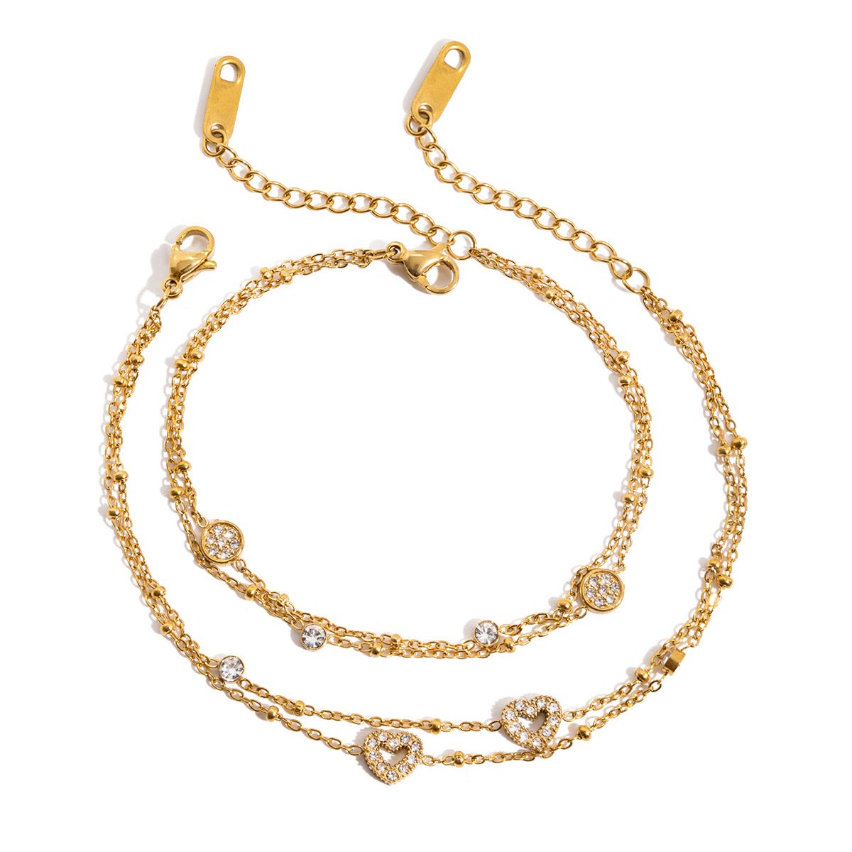 Retro Hong Kong Style Exquisite Bracelet for Women 18K Gold Stainless Steel Niche Design Double-layer Chain QT Clasp Bracelet