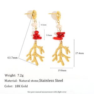 European and American cross-border hot-selling earrings with a stylish retro design, stainless steel 18K gold-plated coral branch pendant and stud earrings