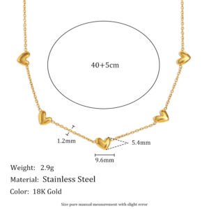 European and American cross-border hot-selling elegant and versatile exquisite necklace, 18K gold-plated stainless steel oblique heart-shaped O-shaped necklace.