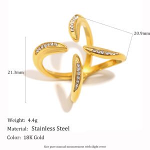 European and American cross-border hot-selling Fashionable, niche-design stainless steel 18K gold-plated four-claw open ring