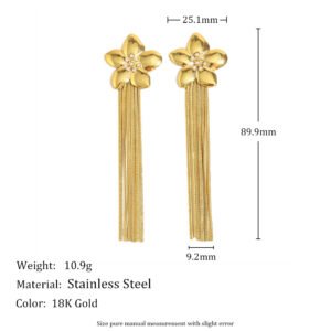 European and American cross-border hot-selling INS-style elegant and high-end earrings, stainless steel 18K gold-plated flower long tassel earrings.
