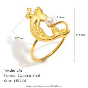 European and American cross-border hot selling 18K gold-plated stainless steel mermaid imitation pearl ring with a stylish design.