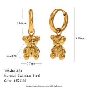 European and American cross-border hot-selling fashion trend, high-end 18K gold-plated stainless steel bear pendant and thin snake chain necklace for women.